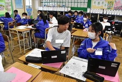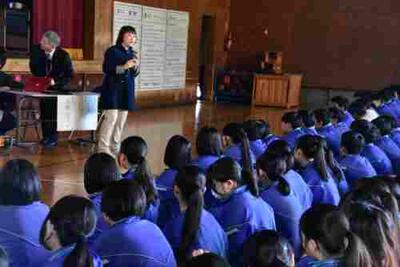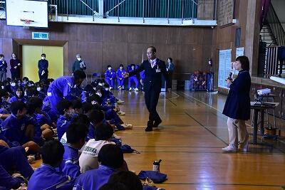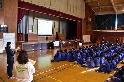葛飾中学校区の「スーパー元気・さわやかキャンペーン」が行われました。学校を代表して生徒会本部役員のみなさんが、それぞれの学校の学校自慢、いいところを紹介しあい、これから葛飾中学校に入学する小学生たちと交流を深めました。