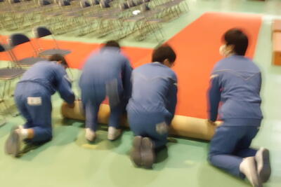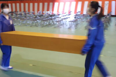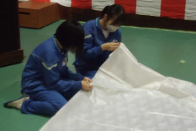 3月16日 在校生朝会・卒業式場片付け