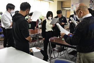 新たに葛飾中学校に着任した先生がたです。着任の届などの記載をして、職員への紹介を行いました。