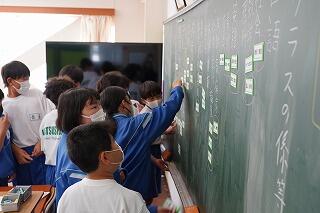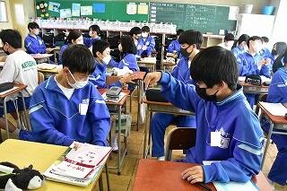 全国学力・学習状況調査の「話すこと」(英語)に関するテストが、学習用タブレットを使って行われました。放課後には、春日部大凧マラソン大会の学生ボランティア(競技役員)についての説明会が行われ、たくさんの(本当に大勢の)生徒たちが参加しました。こうしたことにも「葛中魂」は息づいています。