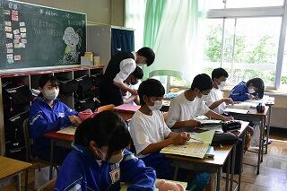 雨の一日となりました。理科室では3年生と1年生の授業が行われていました。1年生は植物の観察を行っていました。1年生は、最近、登校時にそれぞれかわいらしい草花を手に登校していますが、理科の授業に使うためだったのですね。