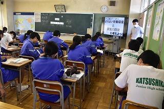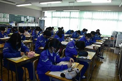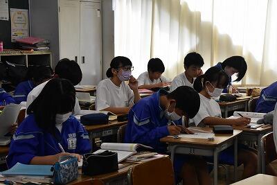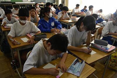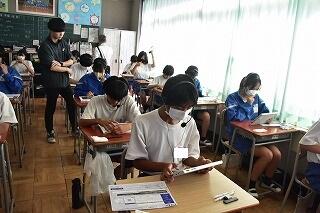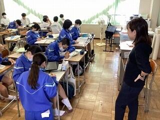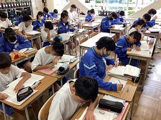 朝夕は涼しく、すっかり過ごしやすくなりました。体育館では3年生が、実際の隊形に並んで、学年合唱の練習を行っていました。2年生は、スコア型4技能検定GTECを受検しました。GTECは、使える英語力を合否ではなく絶対評価で測定する、スコア型の検定です。検定では、「聞く」「話す」「読む」「書く」の4技能の英語力を測定します。今年度より春日部市内全校で実施することになりました。通常の「聞く」「読む」「書く」テストに加え、タブレットを用いて音声を録音することで「話す」技能も測定します。結果はスコアだけでなく今後の学習へのアドバイスもあります。結果を基に更なる英語力アップを図りましょう!