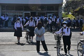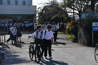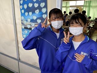 ひんやりとした空気と透き通った青空の下、今日も地域の方々があいさつ運動に来てくださいました。また、生徒会のみなさんも一緒に校門に立って声を掛けてくれました。明後日の合唱祭を前に、校内のあちこちから歌声が聴こえてきます。