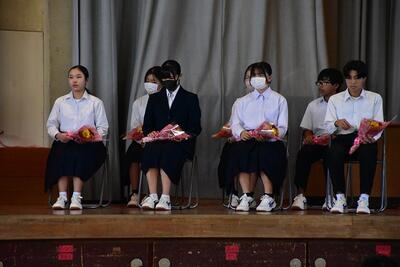 10月13日(金)「葛中魂」生徒会役員認証式・引継ぎ式 表彰集会