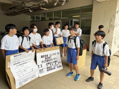 葛飾中学校では、ファーストリテイリングがUNHCR(国連難民高等弁務官事務所)と取組んでいる学習プログラム「届けよう、服のチカラ”プロジェクト」の活動として、有志ボランティアによる、難民支援活動(子供服の回収活動)のキャンペーン活動を行っています。不要となった子供服がありましたら、回収活動へのご協力をお願いいたします。