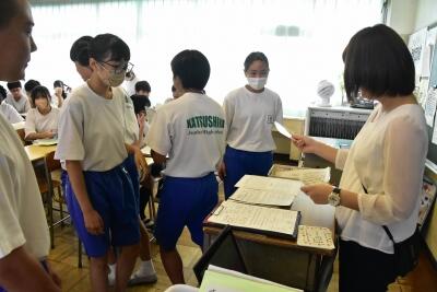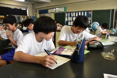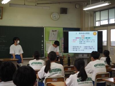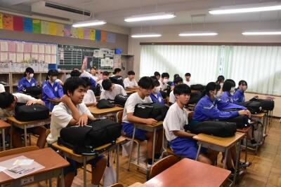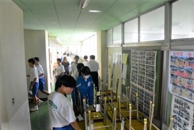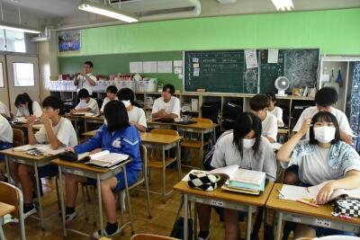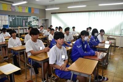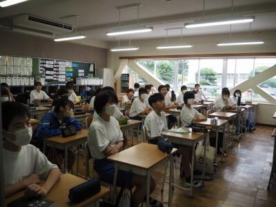 保健委員のみなさんが、それぞれの学級で「熱中症にならないために」というタイトルで、啓発活動を行ってくれました。そして、PTAの高校見学会が行われました。それぞれの高校の特色を説明していただき、実際に体験してきました。改めて「百聞は一見に如かず」 生徒のみなさん、特に3年生のみなさん、夏休みの期間を有効に活用し、ぜひ自分の足で直接学校へ出向き、高校の様子や特色を自分の目で耳で確かめてきてください。大きな収穫となるはずです。