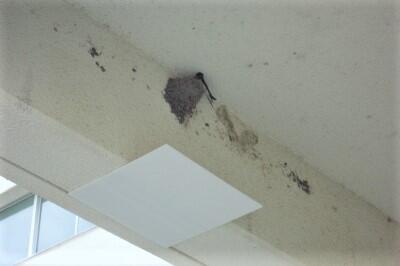 今年も葛飾中学校にツバメがやってきました。巣の中ではかわいい雛たちが親ツバメからエサをもらっていました。教頭先が「落下物」対策をしてくれました。
