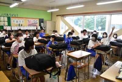 信じられない暑さが続いていたせいか、十分に暑いのに、過ごしやすく感じたのは私だけではないと思いますが、それでも熱中症に警戒しなければならないことには変わりありません。今日は、春日部市教育委員会から指導者の先生をお迎えし、授業研究会が行われました。また、放課後には久々に部活動を行う生徒たちの姿が見られました。外での活動は、短時間での活動に限定しての実施となりました。