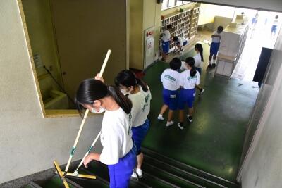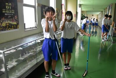 明日の1学期終業式を前に、それぞれの学年で学年集会が行われました。3時間目には大掃除が行われました。蒸し暑いなかにも関わらず、みなさん大変頑張って清掃を行ってくれました。
