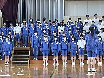 明日の合唱祭を前に、全校合唱の練習と、合唱祭前の集会が開かれました。明日の合唱祭、テーマは「精一杯の僕らの歌声 響かせろ葛中魂 Top of the world」です。生徒のみなさん、全力でがんばってください!保護者の皆様、どうぞご期待ください!