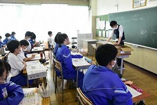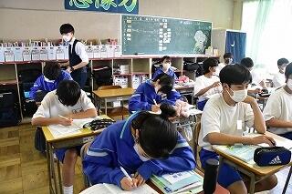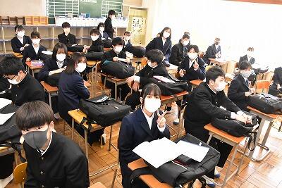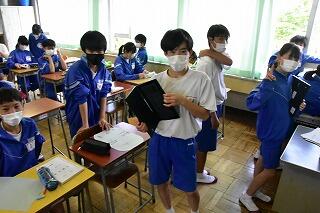 全国学力・学習状況調査の「話すこと」(英語)に関するテストが、学習用タブレットを使って行われました。放課後には、春日部大凧マラソン大会の学生ボランティア(競技役員)についての説明会が行われ、たくさんの(本当に大勢の)生徒たちが参加しました。こうしたことにも「葛中魂」は息づいています。