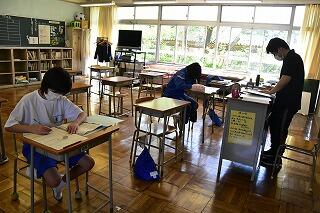 雨の一日となりました。理科室では3年生と1年生の授業が行われていました。1年生は植物の観察を行っていました。1年生は、最近、登校時にそれぞれかわいらしい草花を手に登校していますが、理科の授業に使うためだったのですね。