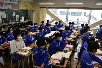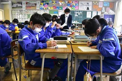 いよいよ明日に迫った卒業式。3年生は今日も立派に葛中生らしい姿で過ごしていました。放課後には名残を惜しむ様子や、友達や先生と卒業アルバムにメッセージを書きあう姿がありました。1・2年生は卒業式の会場となる体育館をはじめ、学校中を心を込めて掃除し、卒業式場を整えました。明日で卒業してしまうのはとても寂しいですが最高の「葛中魂」を期待しています。