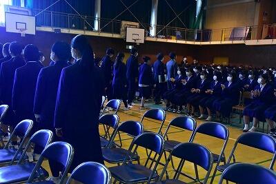 本日午前中に、全校生徒全員で卒業式の予行を行いました。
