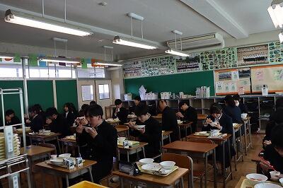 厳かで、あたたかく、涙と感動の最高の卒業式でした。立派な姿で3年生を送った在校生、心に染み入る先輩への尊敬と愛情あふれる生徒会長の送辞、そして、3年生の答辞はまさに圧巻でした。涙の中全力で歌った「YELL」に葛中魂の神髄を見せつけられました。3年生は卒業の日に最高の姿で「先輩に学べ」を体現してくれました。今日から寂しくなりますが、それぞれの道で頑張ってください。 ※HPに掲載していなかった給食の様子も載せました