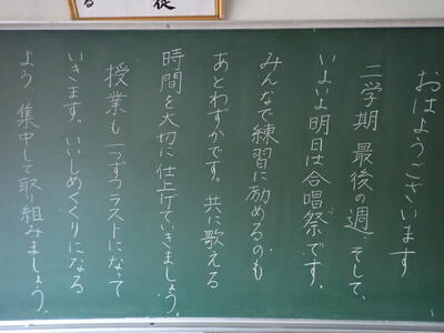 昼休みは、合唱練習での歌声が学校中飛び交いました。