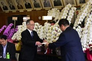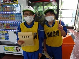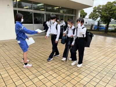 生徒会本部役員のみなさんが、朝の挨拶運動と「緑の羽根募金」が行われています。みなさんに協力いただいた募金は、「緑の募金」を通して、身近な地域や国内外の森づくりにつながり、さまざまな「森づくり・人づくり」活動の活性化に活かされるそうです。