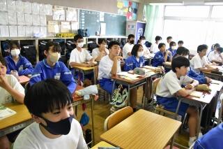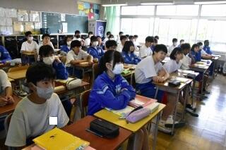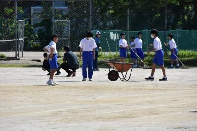 大雨の月曜日となりました。いよいよ今週は体育祭です。明日からはまた、暑くなるようです。教職員は職員会議終了後に、「熱中症予防研修会」を行いました。先生方も恐ろしい熱中症から生徒を守るべく対策をしていますが、保護者の皆様方、生徒の皆さんも十分な量の水分(スポーツ飲料など)を用意し、こまめに水分補給を行ってください。ご協力をお願いいたします。