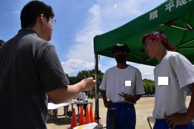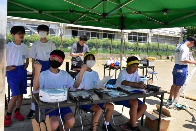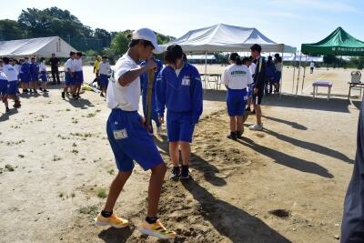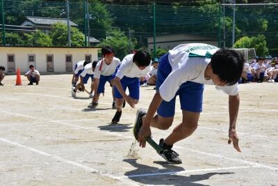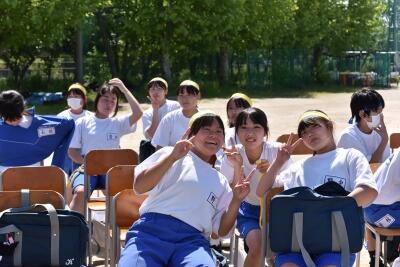 体育祭の予行が行われました。日差しが強く、大変暑くなりましたが、湿度が高くならなかったことは幸いでした。予行の間は、体育科の先生の指示で、予行を中断しての全体給水・休憩の時間がたびたび設けられたり、帽子の着用が促されるなど、熱中症対策を行ったため、体調不良の生徒もなく、無事に予行を終わることができました。予行そのものは、元気な声に明るい表情の「葛中魂」あふれるすばらしい出来栄えでした。保護者・地域の皆様、土曜日の本番を楽しみになさっていてくださいませ。