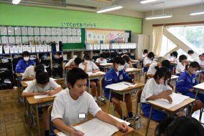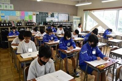 期末テストの1日目。教室では、生徒たちが真剣に答案用紙と格闘していました。あともう一日、時間を有効に活用し、全力で頑張ってくださいね。何度も何度も授業中に配られたプリント、試験範囲のワーク、ノートなどを見返し取り組んでください。