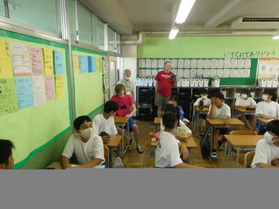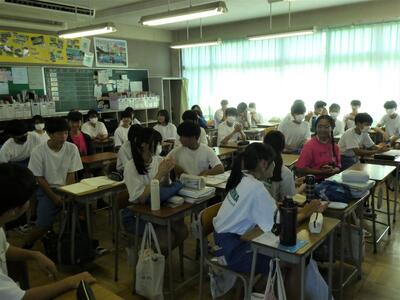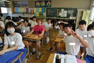早速、5クラスに分かれて日本の中学校生活を体験してもらっています。