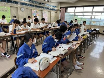 学校総合体育体育大会の市内予選も、これから実施の競技もありますが、一段落し、各教室ではいつも通り落ち着いて授業を受ける生徒たちの姿がありました。土・日を迎えます。天候の変化や交通事故、熱中症などに気を付けてお過ごしください。今日・明日は、本校陸上部のみなさんが、熊谷市の熊谷スポーツ文化公園陸上競技場にて行われる、第70回 全日本中学校通信陸上競技 埼玉県大会に出場します。「葛中魂」でがんばってください!