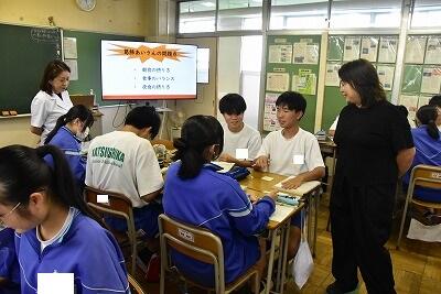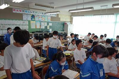 10月になりました。10月の葛飾中もいろいろな行事が盛りだくさんです。今月も充実した一か月となりますようご協力をよろしくお願いいたします。今日は、定期的に実施している、地域の小学校・中学校連携事業の一環としての「食育」の授業が行われました。今回は3年生での実施ですが、どのクラスでも健康な身体づくりを考えた食生活について真剣に考え、先生の話に耳を傾けていました。