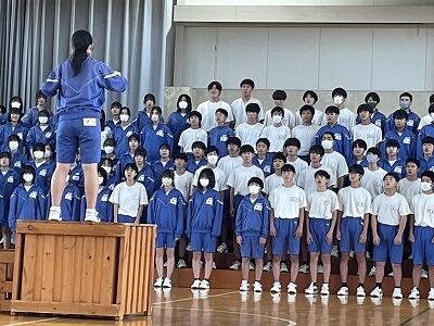 明日の合唱祭を前に、全校合唱の練習と、合唱祭前の集会が開かれました。明日の合唱祭、テーマは「精一杯の僕らの歌声 響かせろ葛中魂 Top of the world」です。生徒のみなさん、全力でがんばってください!保護者の皆様、どうぞご期待ください!