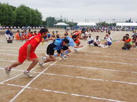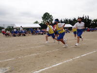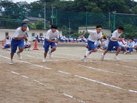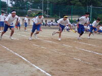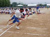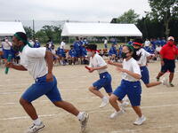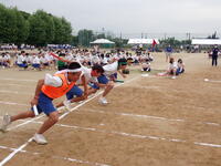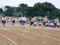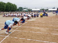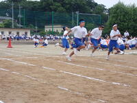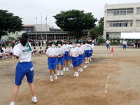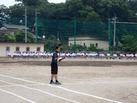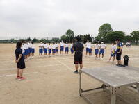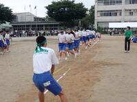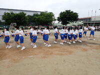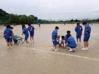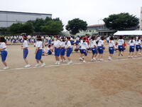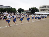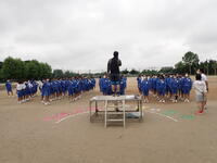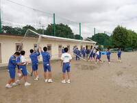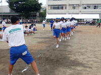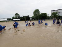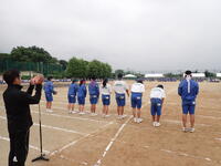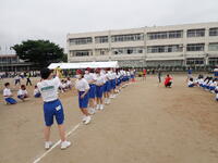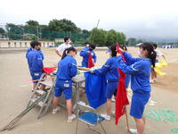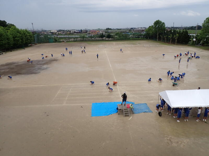 早朝から雨が降り出してしまいましたが、1時間遅れで体育祭を開催することができました。たくさんの生徒が朝早くから集まり、水取り、砂まき、ライン引き等の整備を期待以上の早さで仕上げてくれました。本当にありがとうございました。