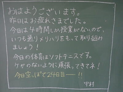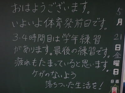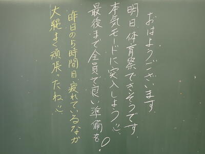 先生からのメッセージです。全力を出し切った体育祭の余韻が感じられます。