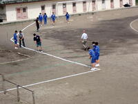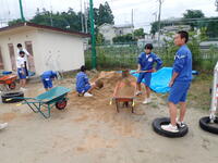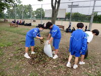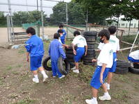 まずは、男女テニス部が校庭の石や草を取り除いてくれました。
