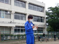 競技開始です。選手の動きだけでなく、得点係、放送係、出発係、決勝係、等の各分担ごとの動きも確認しました。それぞれの生徒が責任と自覚を持って、どの係も初めてとは思えない動きをしてくれました。これで本番はOKです。