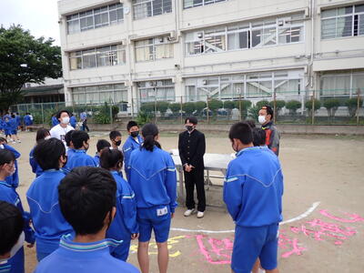 各競技が終わった後にお互いに拍手をしたり、賞賛し合ったりしていました。また、開・閉会式の各あいさつにも自然と生徒から拍手が起きました。3年生のあるクラスの黒板に「勝つ!ために心に余裕を マイナス発言禁止」と書いてあったり、2年生のクラスには体育祭練習のための持ち物の中に「気持ち」と書いてありました。人に対してなんて心が温かく、行事に対してなんて熱い思いを持って臨んでいるのか、と思うと感動を覚えました。本当に素晴らしい行事となりました。今回のスローガン「ディスタンスそれでも心は一致団結 体育祭爆発的に盛り上げろ」は完璧に達成されました。