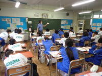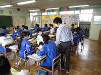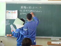 昼休み、ALTのフェルナンド先生(通称ナンド先生)が明日の英検対策のための学習会を開いてくれました。解き方のちょっとしたコツや、英作文でどんなときでも使える表現などを教えてくれました。