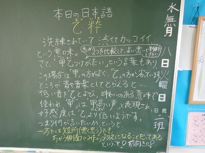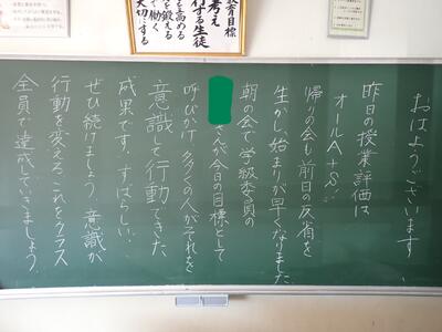 これを聞いて本当に私自身もうれしくなりました。心身や技術だけでなく心も確実に育っていると確信した瞬間でした。教頭先生はこんなこともお話ししてくれました。「小学校の登校指導をしているときに、近くを通る葛飾中生がみんなあいさつしてくれるんですよ」と。校内でのあいさつの多さについては何度かこのブログでも触れましたが、校外でも同じだったんですね。「地域の子葛中生」これからもどんどんあいさつして、もっともっと地域から愛される葛飾中にしていきたいですね。
