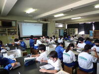 5時間目、2年生は進路学習として高校調べをしました。各1人1台のタブレット端末を使ってお気に入りの高校を探していました。慣れた手つきで操作している生徒の多さに驚きました。どんどん活用していきましょう。