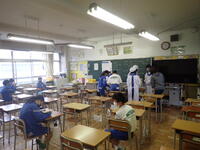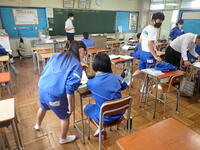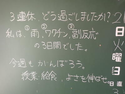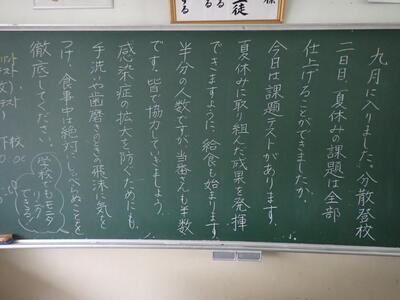 2学期最初の給食です。感染症拡大防止対策をしながらみんなで協力して取り組みました。そして、黙食をみんなでしっかり守っていました。