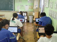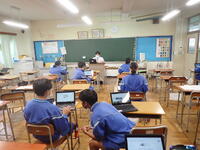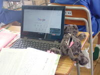 生徒が下校した後、15:30から3年生、14:00から1,2年生が持ち帰ったタブレット端末を使って模擬学活を行いました。思っていたよりもスムーズにつながることができました。次回は課題のやりとりをする予定です。