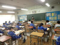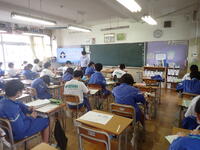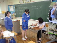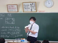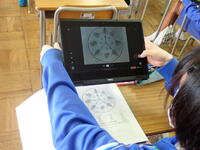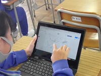 3年生の数学の時間で、リモートの予備授業が行われました。家庭のタブレット端末で板書が見えるか、問題を解いた解答をカメラにどのくらい近づけば先生が確認できるか、等を試しました。