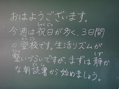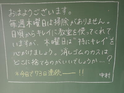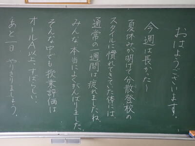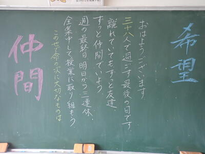 先週まで教育実習をした波田野先生からのメッセージです。良い先生になってください。