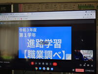 1年生は、総合的な学習の時間に進路学習「職業調べ」を行いました。