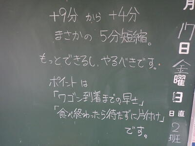 Bグループ給食初日です。今日もみんなで協力して準備をしました。もちろん黙食を守っています。