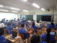 3時間目、1,3年生はGoogle Classroomを使って課題提出の仕方、2年生はGoogle Jamboard(離れた場所からでもリアルタイムで簡単にアイデアを形にして共有できる、共同作業に最適なデジタル ホワイトボード)の使い方を学びました。生徒は覚えるのが早いですね。先生たちも頑張ります。