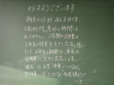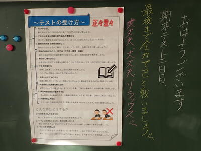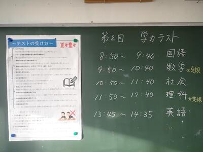 3年生は今日から期末テストです。成果が発揮できたでしょうか。