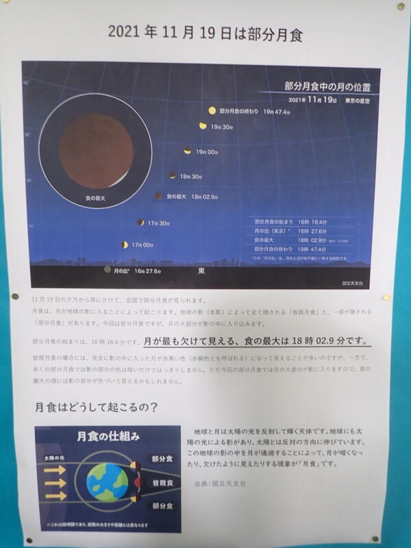今回は皆既月食に近い部分月食だそうです。めったにないことなので、みんなで観察しましょう。