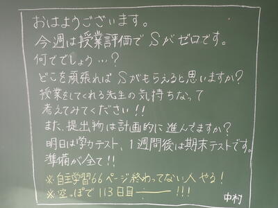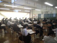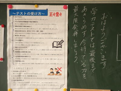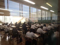 3年生は昨日今日が期末テスト。1,2年生は学力テストです。みんな一生懸命取り組んでいました。