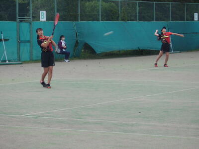 大会2日目、既に県大会出場決めた団体戦の準決勝に臨みましたが、惜しくも敗れてしまいました。その後、個人戦ダブルスに5ペアが臨みました。