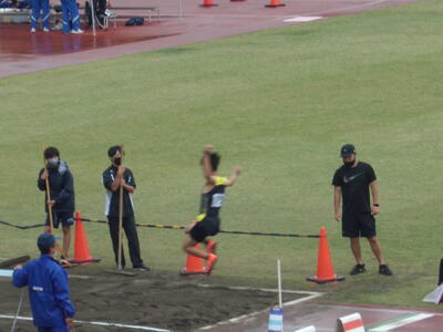 今日は学総陸上競技市内予選会2日目。一昨日と打って変わって、小雨が断続的に降り気温も低いコンディションの中競技が行われました。午前中には跳躍種目、午後には1年走り幅跳びや1500m、リレーが行われます。
