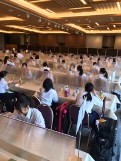 全員集まり昼食です。感染症対策がしっかりなされていました。自習をしているわけでは、ありません。