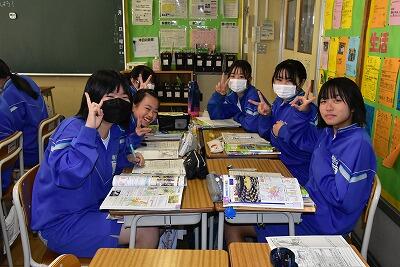 まず、修学旅行についてです。修学旅行では、2泊3日で京都・奈良に行きました。私達にとって、1日の予定をグループで話し合って決めるということは、初めてのことでした。時間を確認したり、かかる費用を計算したりと、たくさんのことを初めてやりました。私は、修学旅行実行委員をやりましたが、みんなに指示を出したりするのが難しく、私自身が戸惑ってしまったことが多くて、みんなに迷惑をかけてしまいました。でも、同じ実行委員の方にも助けられ、また、自分から率先して動いてれる人も多くいて、私も落ち着きを取り戻せました。本当に有り難かったです。中学校生活の思い出の一つになった修学旅行ですが、お世話になった方への挨拶や皆で協力できるところなど、改めてとてもいい学年だなと感じる機会にもなりました。
